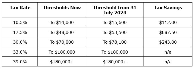 You can access the 2024 budget calculator here to see how much less tax you will be paying from 31 July 2024: https://budget.govt.nz/taxcalculator/index.htm