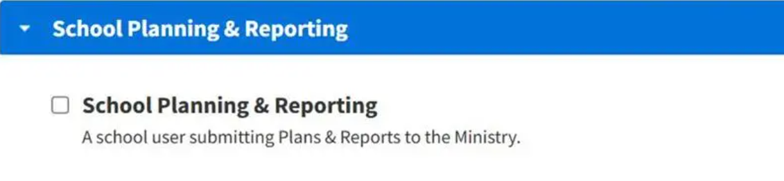 Delegated Authorisers will then need to assign the School Planning and Reporting role to users, as shown below. |