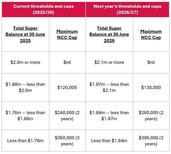 The limits on how much can be contributed to super each year will also increase from 1 July 2026.