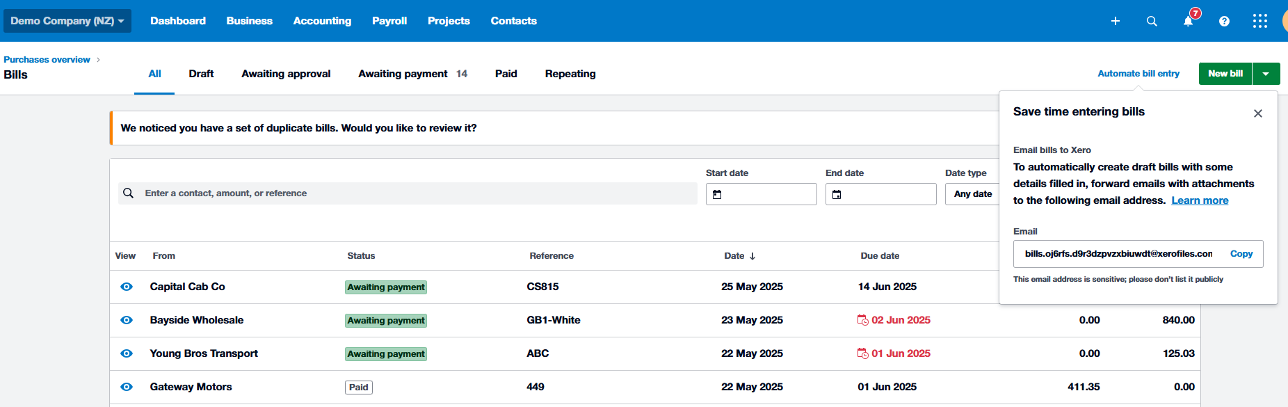 To access your Xero email address, follow the instructions below: Now, whenever an invoice comes in, just forward it to that email address. Xero will automatically create a draft bill for you—ready to be coded and submitted for approval.