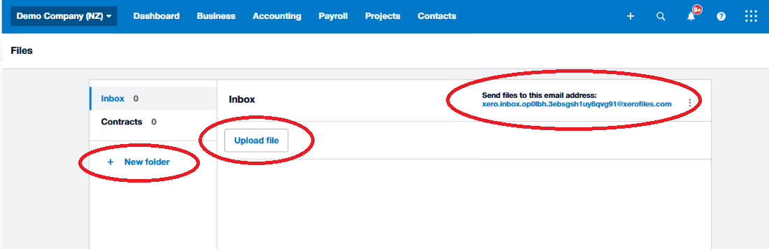 To access your Xero inbox and create a folder: - Click your organisation name, then select Files.
