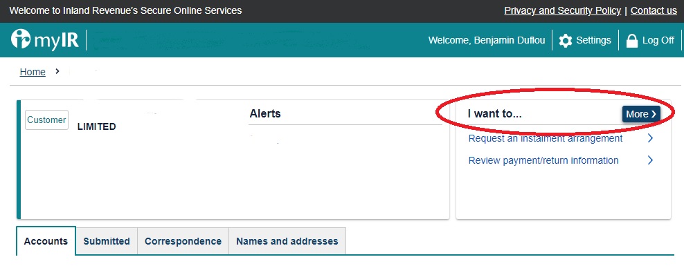 Once you've logged into MyIR, select "Apply for Resurgence Support'' under the "I want to... More >'" and follow the instructions on the screen to complete your application.