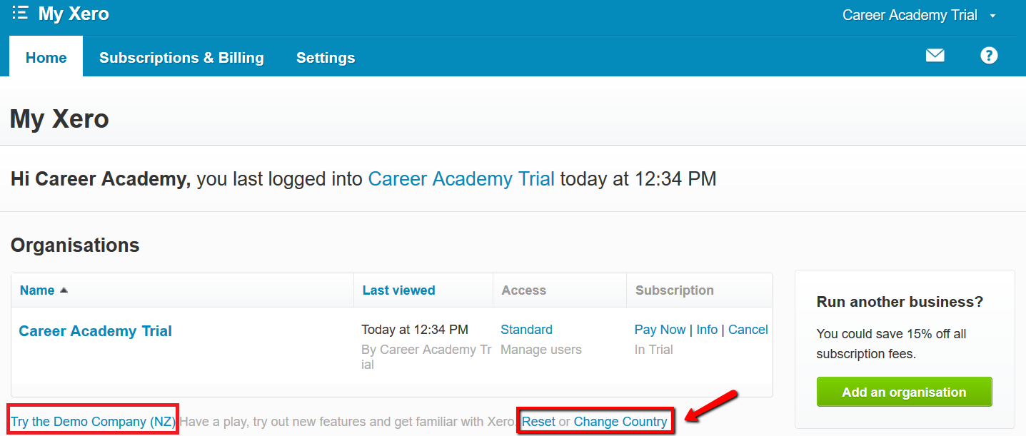 At the bottom of the next screen, you’ll see a link to Try the Demo Company (NZ). You can reset the data anytime. But be aware that any data you enter or import will automatically expire and reset after 28 days.