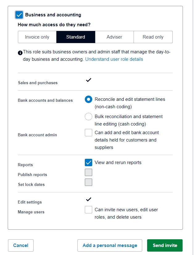 At the bottom of this screen, you'll see a link to "Understand user role details". This takes you to a page that fully explains what each role can access; no more confusion when choosing the correct options for a new user.